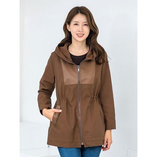 [모슬린]엄마옷 반후드 인조가죽 사파리점퍼 MQG124456 마담 미시 중년여성 빅사이즈 할머니옷 50대 60대..