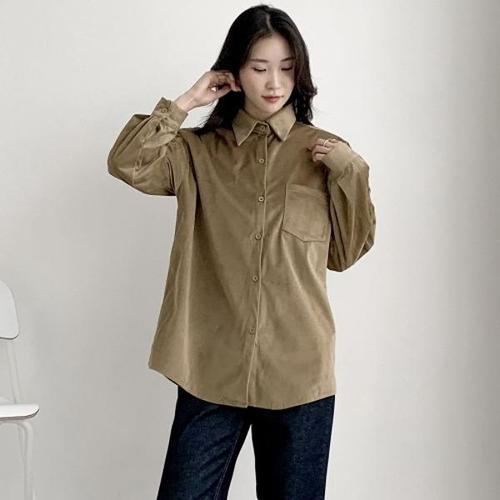 [다잇템][다잇템] 여자 힙커버 주머니 FW 골덴남방 빅사이즈 오피스룩 셔츠_22917508_588872