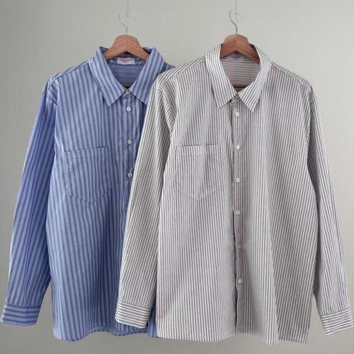[신상오픈런]여성 아방핏 빅사이즈 스트라이프 포켓 셔츠 오피스룩