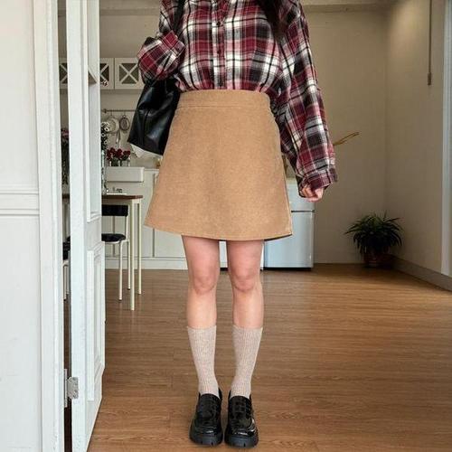 (25년 신상) 80kg까지 빅사이즈 1+1 여성 기모 하이웨이스트 밴딩 빈티지 골덴 스커트 가을 겨울 편한 고급 심플 우아한 찰랑 여성스러운 분위기 디자인 심플 a라인 스커트