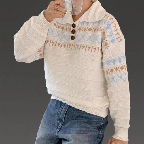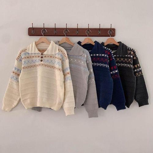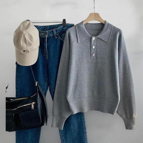 [다잇템]여성 카라넥 빅사이즈 롱슬리브 단추 스웨터