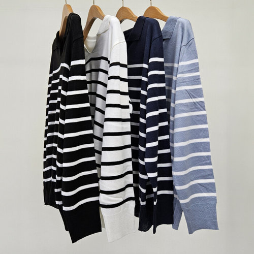남성 봄가을 긴팔 카라니트 루즈핏 스트라이프 레이어드 스타일
