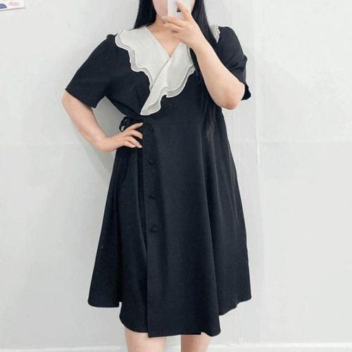 나야홍 / 빅사이즈카라원피스 O592L502 루니아블랙배색원피스 B