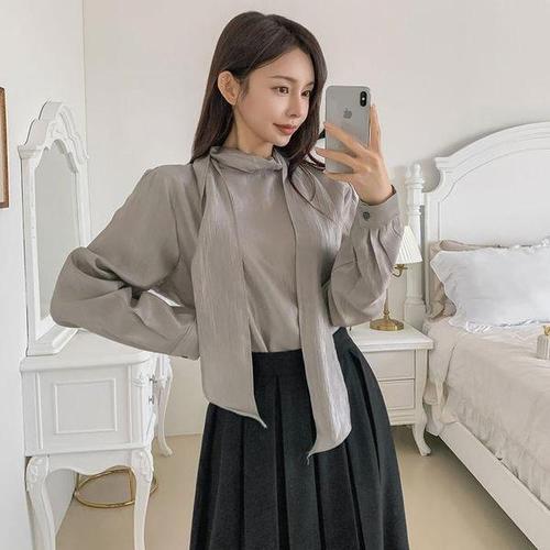 [셀러허브_여성트랜드패션]여자 하객룩 롱타이 광택 빅사이즈 블라우스
