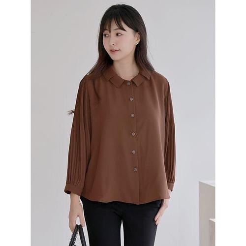 [드리다]가을 겨울 카라 플레어 빅사이즈 플리츠 블라우스 40-50대 미시 중년여성 엄마옷 하객 모임 상견..