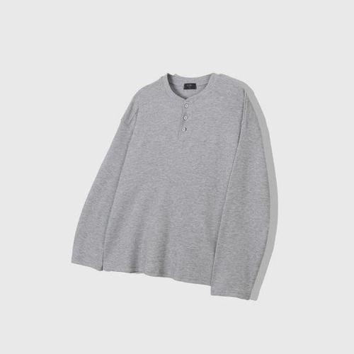 [옷자락] 남자 봄긴팔티 헨리넥 버튼 빅사이즈 와플 면 티셔츠
