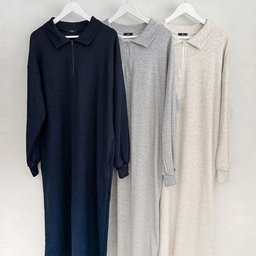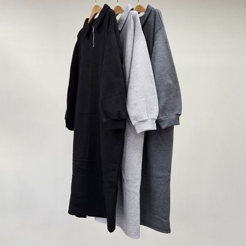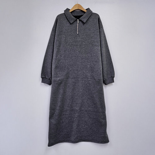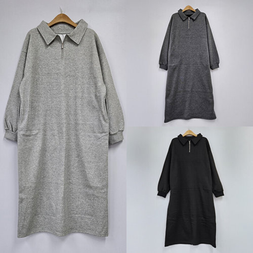[유야]기모 무지 하이넥 집업 카라 긴팔 롱 원피스 -OP0452H- 빅사이즈 루즈핏 여성 겨울