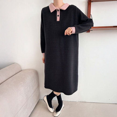 (~XXL까지) 라카리 카라 니트 원피스 겨울 데일리룩 꾸안꾸 출근룩 모임룩 신축성 긴팔니트 빅사이즈