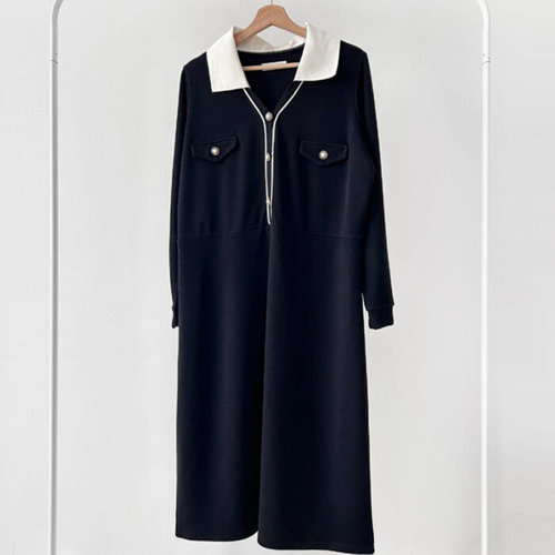 (안나앤플러스) A. 제인 배색 카라 원피스[드레스C1004N01] 빅사이즈