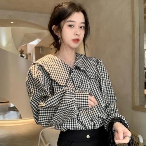 여자 빅카라 러블리 트렌드 체크 블라우스 데일리 루