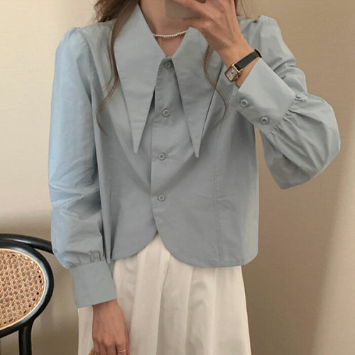 슈팅스타 / 심플 빅카라 퍼프소매 크롭 유니크 셔츠