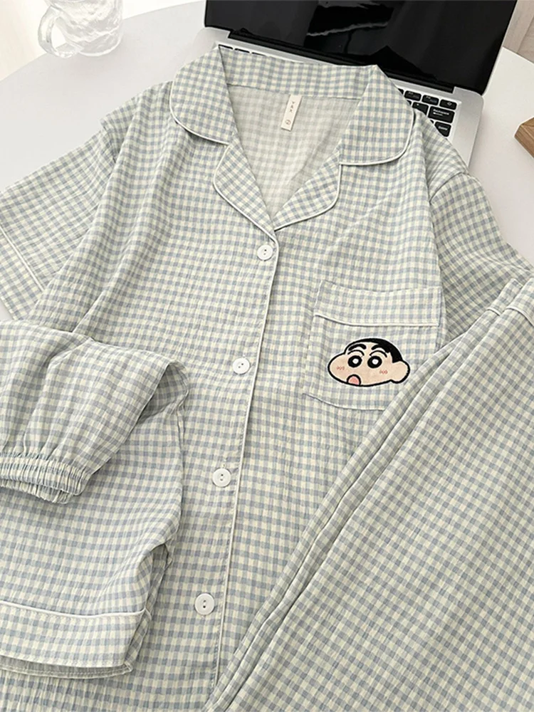 커플 여름 신상 루즈핏 반팔 만화 홈웨어 파자마 바지 면 편안하고 통기성 좋은 남녀 잠옷