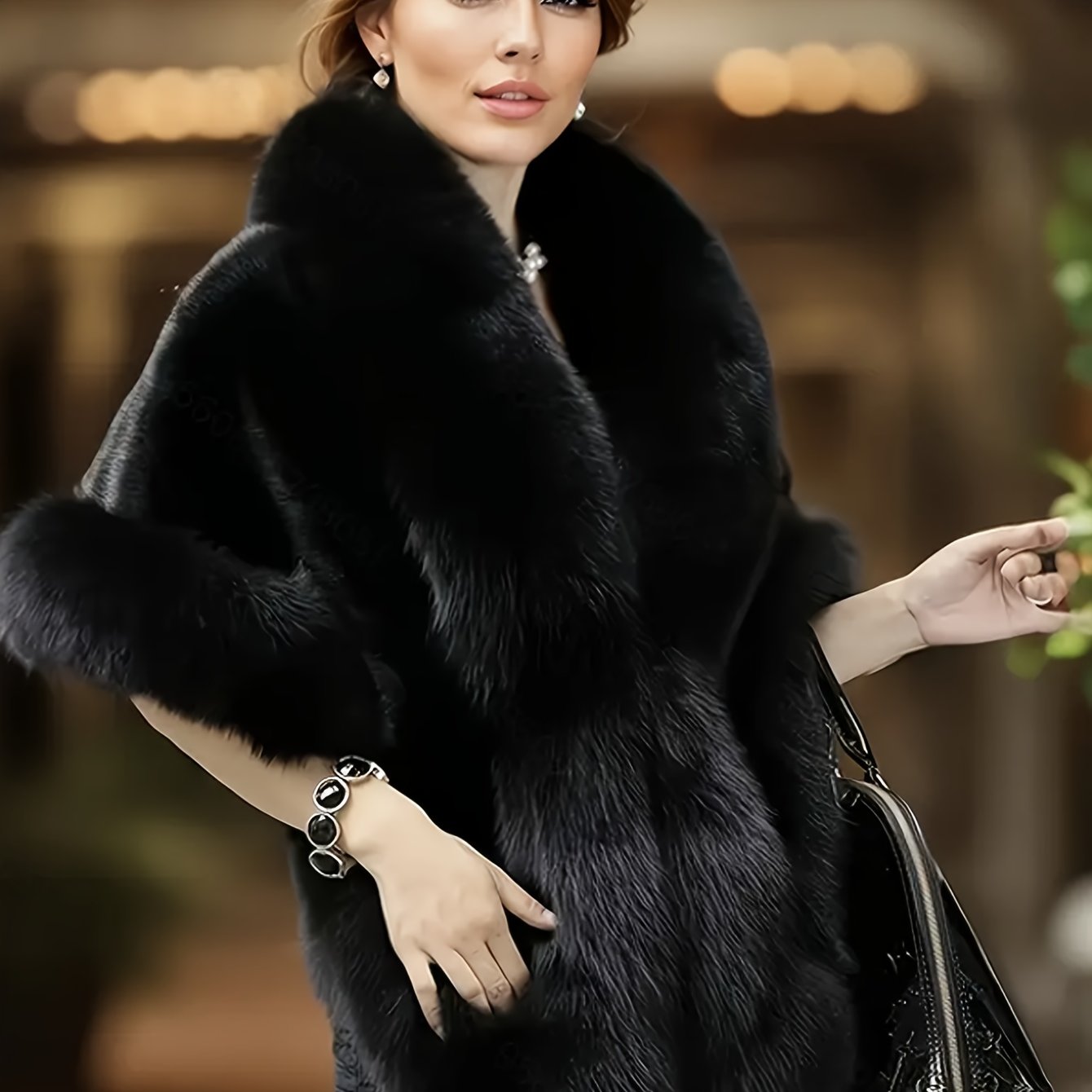 TEMU 플러스 사이즈, 플러스 사이즈 우아한 인조 망토 스타일 - 블랙 럭셔리 겨울 여성 코트, 칼라 디자인, 따뜻한 파티 크리스마스 이브 야외 액세서리, 크리스마스 망토, 축제용 아웃도어 의류, 고급스러운 질감, 고품질 장인 정신, 추운 날씨용 의류, 스타일리시한 아웃도어 의류, 손세탁, 여성 아웃도어 의류, 패션 애호가, 크리스마스를 위한 최고의 선택