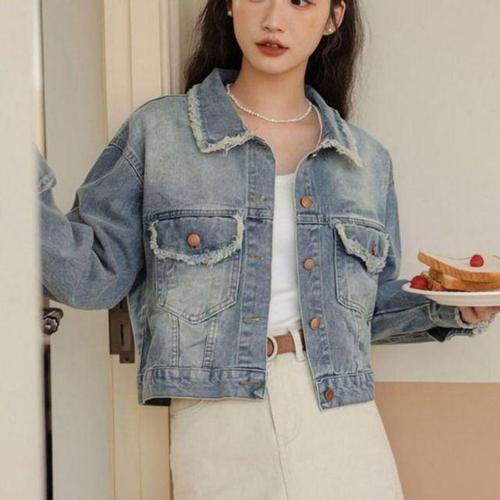 [에이치플러스몰]크롭 수술 빈티지 패션 포켓 청자켓 WS