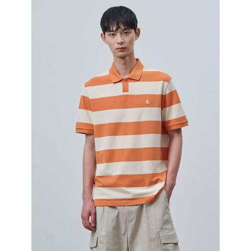 [빈폴멘]원버튼 스트라이프 칼라넥 티셔츠 - 옐로이시 브라운 (BC4342C08B)