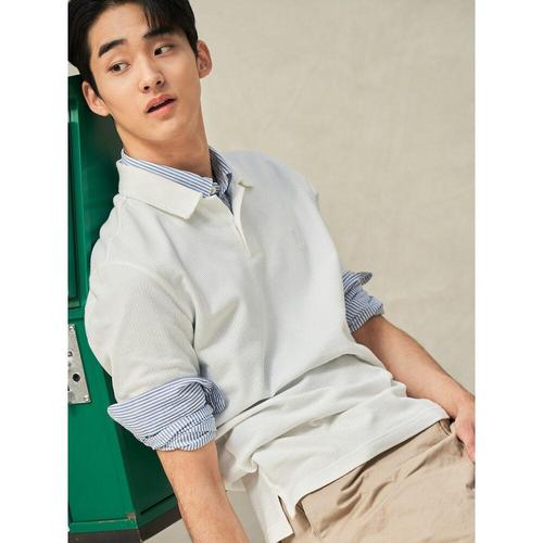 [25FW 신상] [빈폴멘] 메쉬 배색 칼라넥 반소매 티셔츠 아이보리 (BC5742C110)