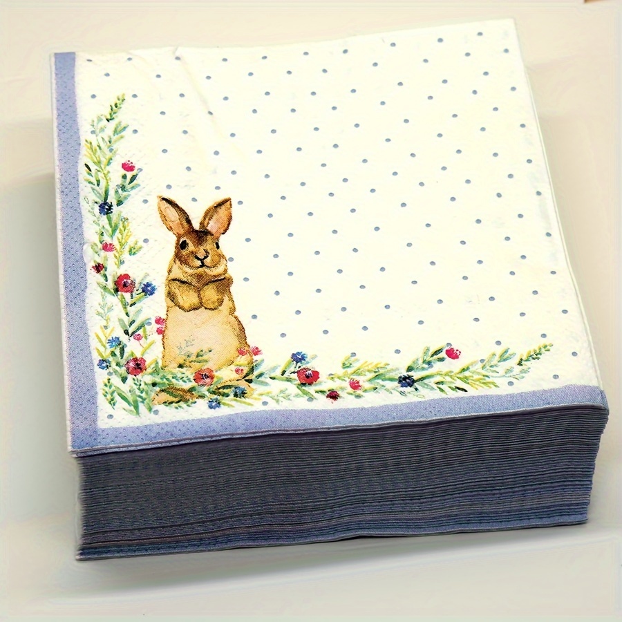 TEMU 40개 생동감 있는 토끼 & 꽃무늬 종이 냅킨 - 결혼식, 생일, 특별한 날에 완벽 - 3겹 일회용 식사용 티슈, 레스토랑 호텔, 홈 파티 장식, 크리스마스에 가장 적합, 추수감사절에 완벽