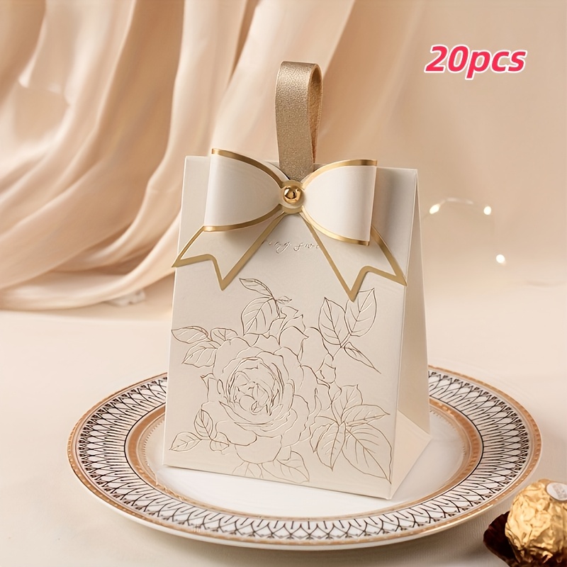 TEMU 샴페인 골드 포일 플로랄 초콜릿 캔디 박스 (리본 포함), 인조 가죽 선물 상자, 생일 선물 상자, 웨딩/기념일/파티 용품