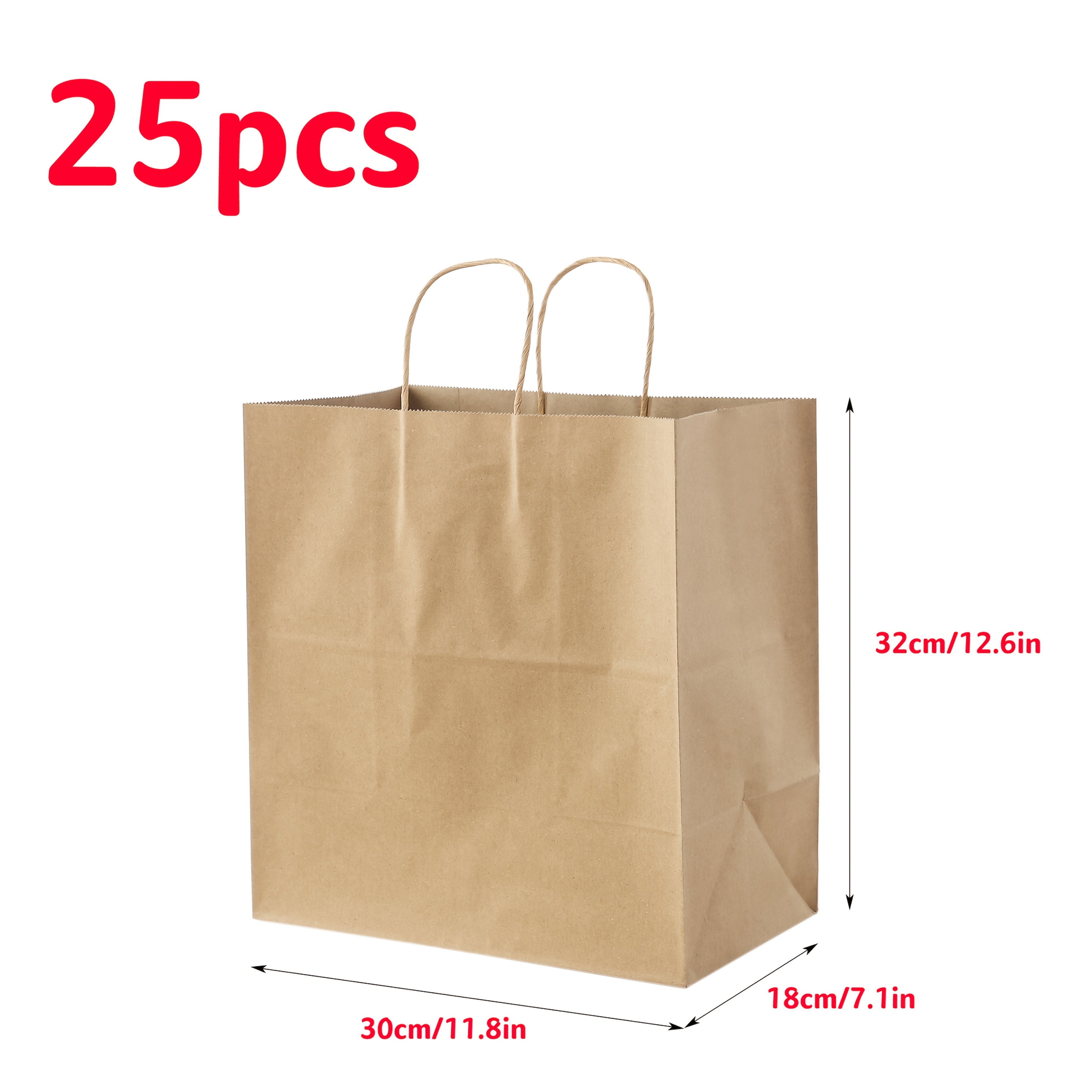 TEMU 25개 대형 갈색 크래프트 종이 가방 (손잡이 포함), 30×18×32cm / 11.8×7.1×12.6인치, 견고한 선물용 가방 (식료품, 소매, 소규모 비즈니스, 생일 & 웨딩 파티용)