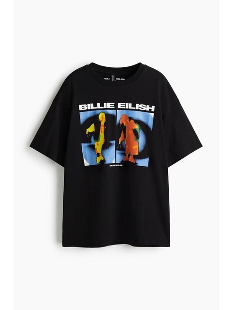 [에이치엔엠] 오버사이즈 프린트 티셔츠 블랙/빌리 아일리시 1296052025