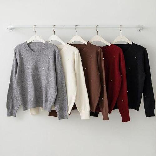 [다잇템][다잇템] 여성 U넥 진주 빨간 베이직 FW 니트_23626613_588872