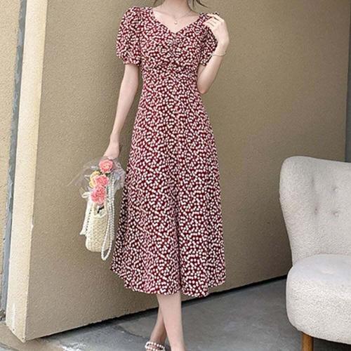 [셀럽하우스]여자 AZXD2292 봄여름 외출 빨간색 얇은 반팔 롱원피스