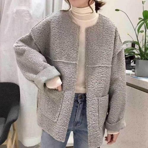 [하프클럽/옷자락]여자 오버핏 포근한 뽀글이 라운드넥 베이직 자켓