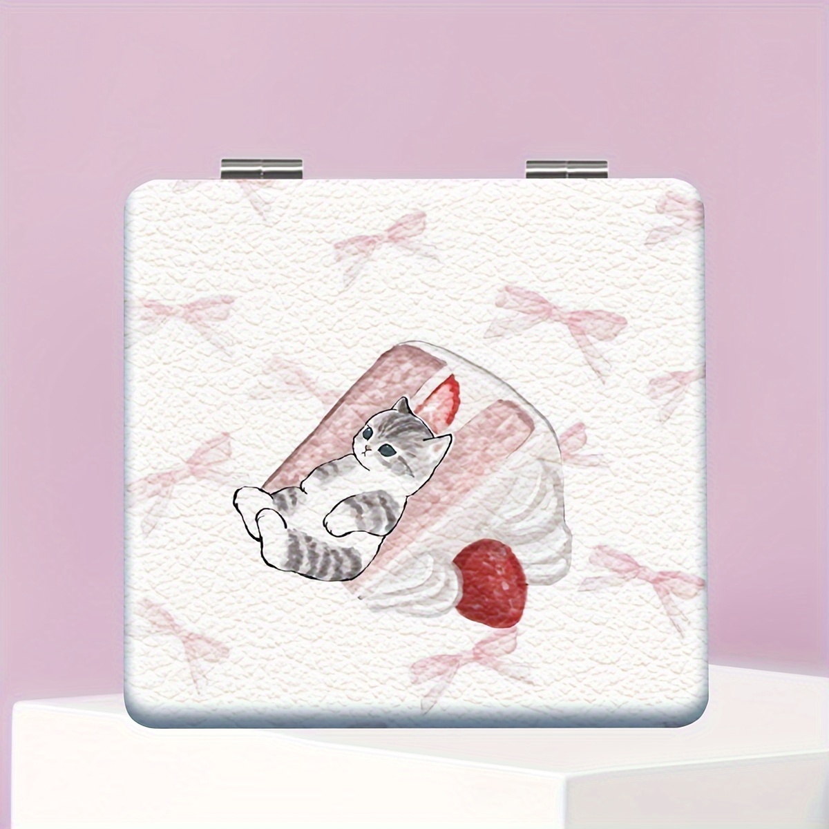 TEMU 밀레니얼 귀여운 곰 & 고양이 리본 미니 메이크업 거울, 접이식 휴대용 화장대 거울, 분말 코팅 표면, 무향, 휴대용, 인조 가죽 프레임, 일상 사용, 생일, 크리스마스, 추수감사절, 데이, 부활절, 자매 및 친구를 위한 결혼 선물