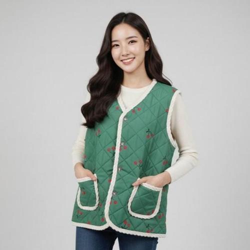[라일리여성의류] Rly 꽃조끼 누비조끼 복고조끼 할머니조끼 패딩