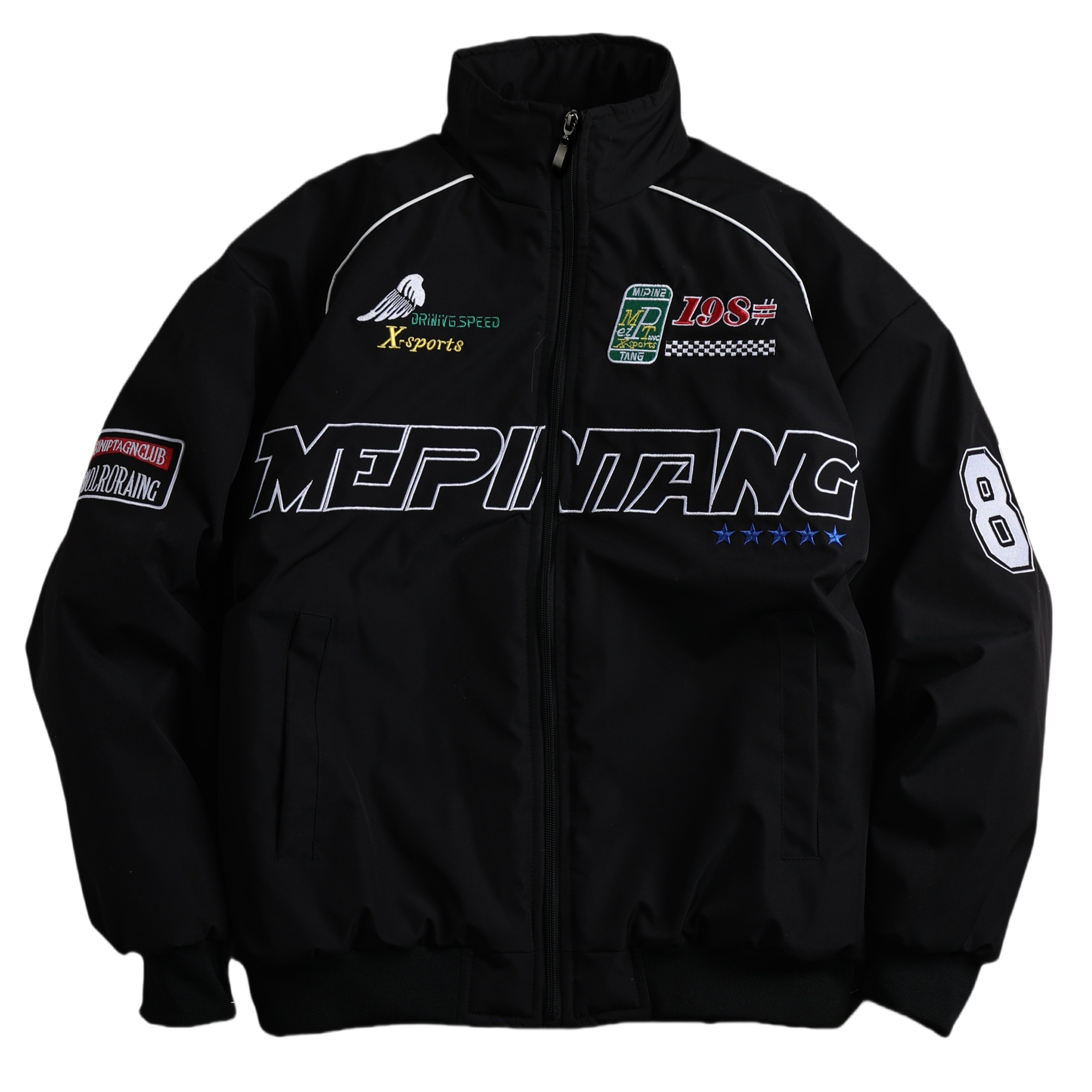 TEMU 남성용 뉴 아메리칸 스트리트 빈티지 스탠드 칼라 자켓, 봄/가을 캐주얼 탑, 트렌디 레터 프린트 루즈 쿨 스타일 남성 자켓 코트