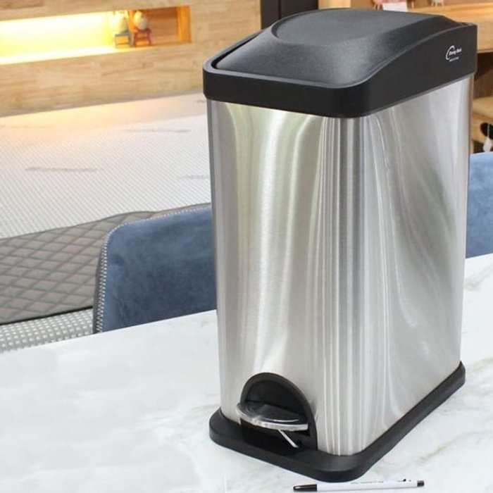 스텐 페달 휴지통 사각 무소음 12L 쓰레기통 분리수거