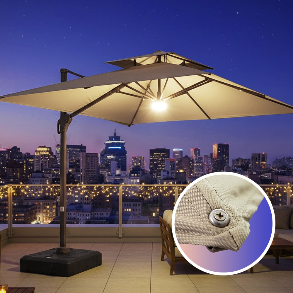 밀라노 3M 폴딩 사각 파라솔 150kg 받침대 LED등 포함