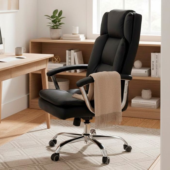 심플우드블랙 스틸프레임 가죽방석 사무의자(530 2색)