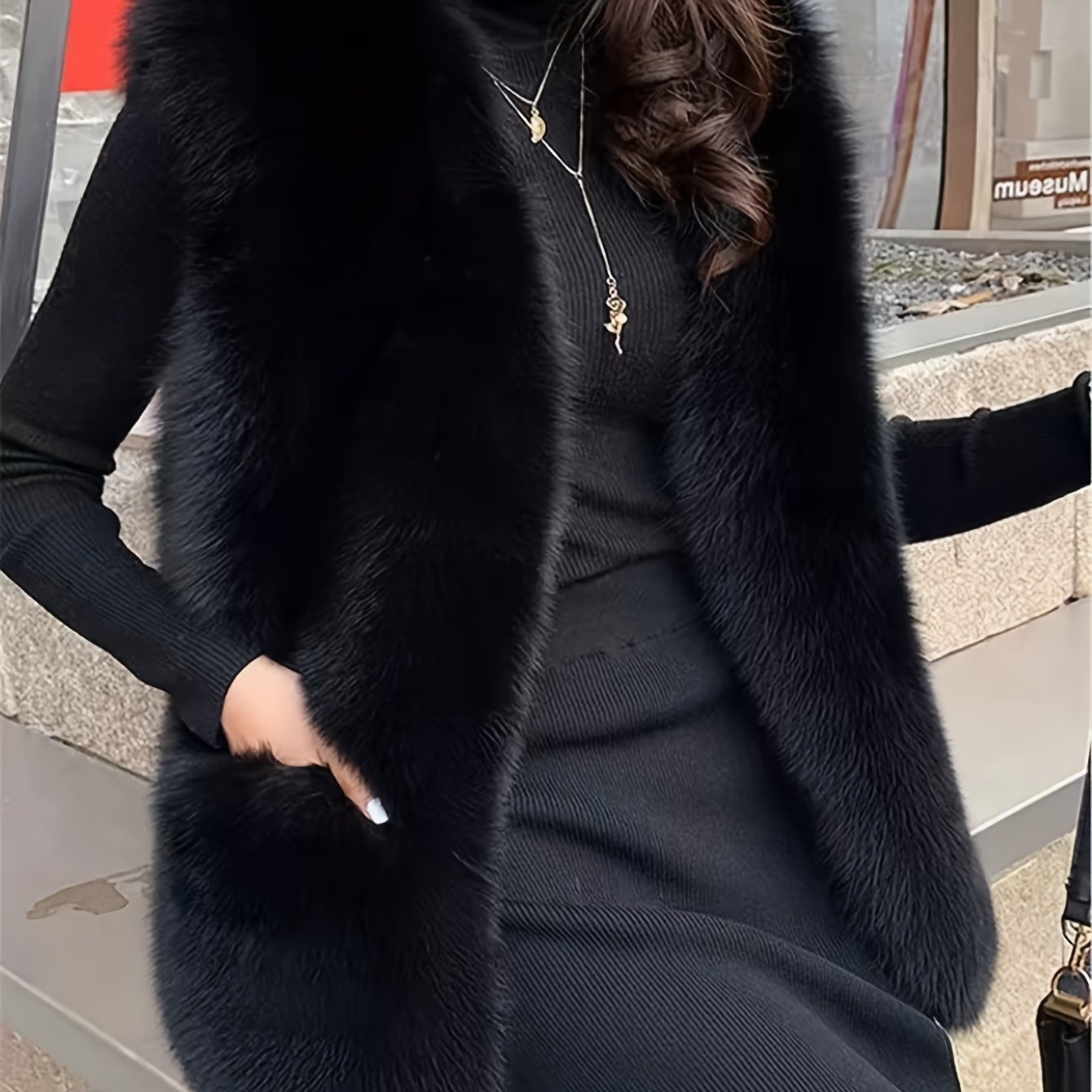 TEMU 여성용 오버사이즈 인조 모피 조끼 - 우아한 긴팔 가을/겨울 패션, 부드럽고 세련된, 갈색, 캐주얼 또는 세련된 옷에 완벽, 겨울 의류 | 우아한 소매 디자인 | 부드러운 모피 조끼, 인조 모피 조끼