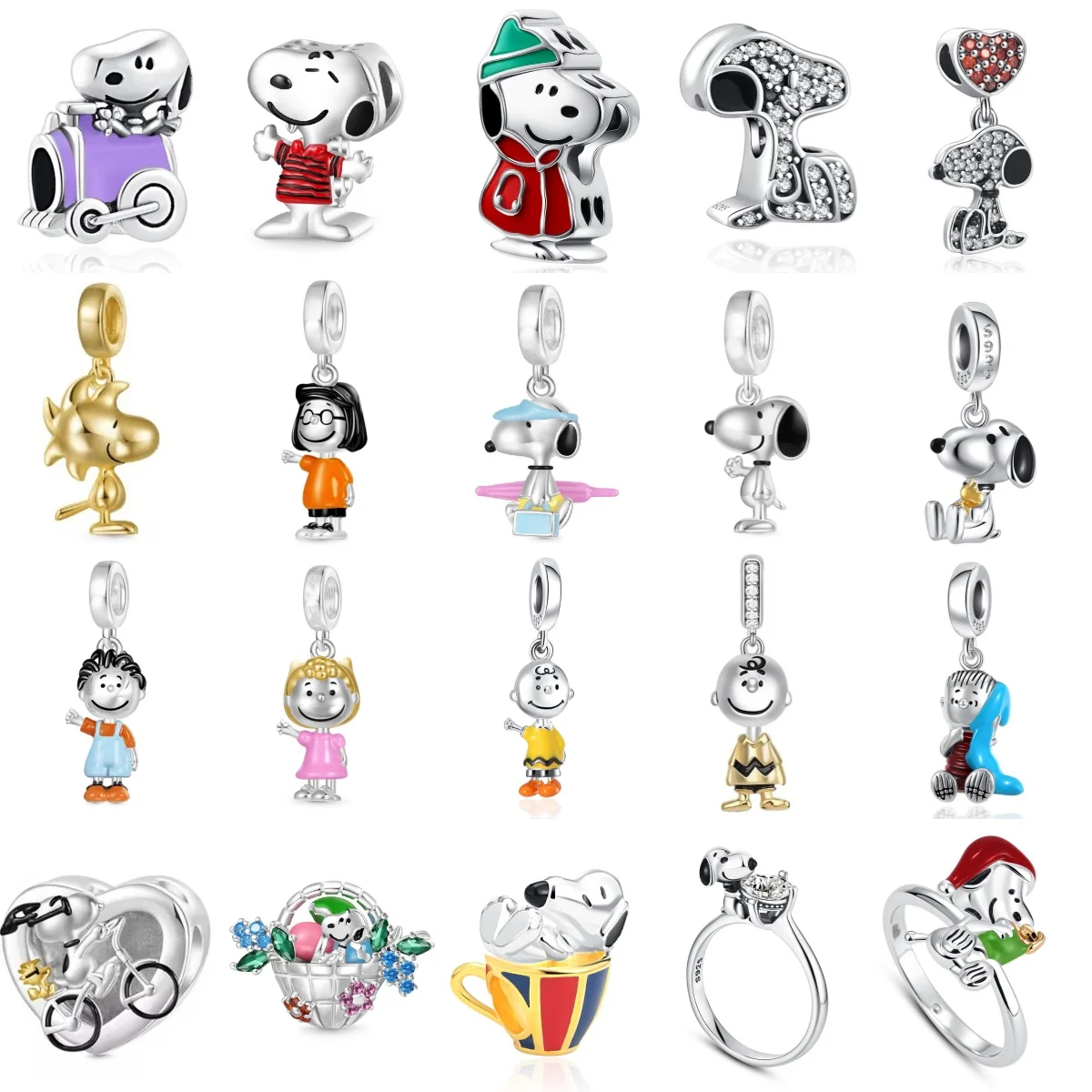 새로운 925 실버 남성과 여성의 자전거 꽃 바구니, 작은 개 동물 펜던트, 원래 유럽 팔찌, 보석 선물에 적합