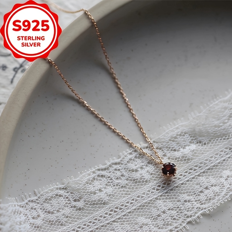 TEMU 여성용 925 실버 석류 레드 합성 지르코니아 펜던트 목걸이 칼라본 체인, 빈티지 우아한 어머니날 선물 보석 (박스 미포함)|은목걸이