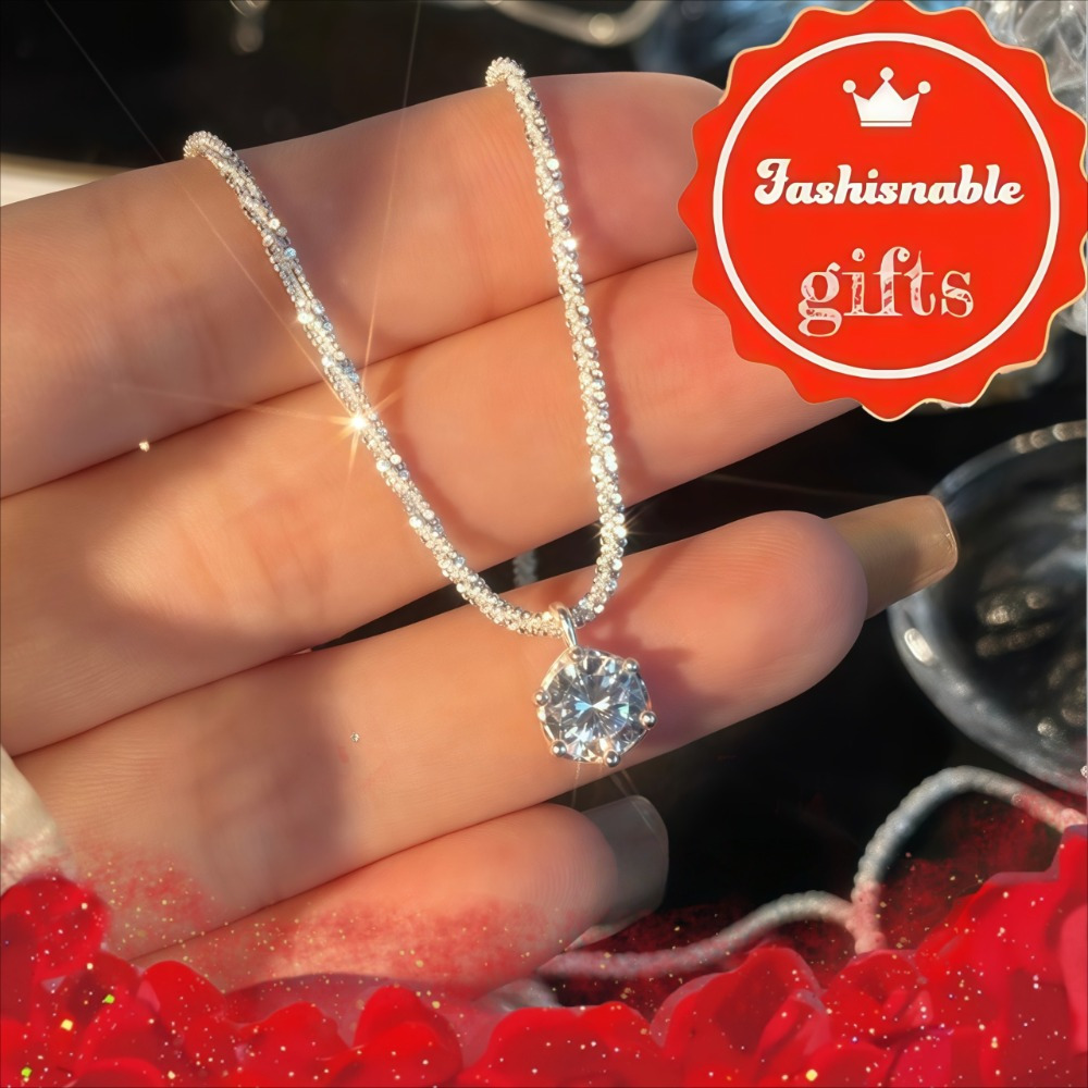 TEMU 우아한 S925 스테인리스 스틸 모이사나이트 펜던트 목걸이 - 반짝이는 돌이 있는 반짝이는 목걸이, 여자 친구, 어머니의 날, 카니발,宴会 및 파티 행사에 완벽, 휴일 선물 | 목걸이 | 귀여운 목걸이 목걸이|은목걸이