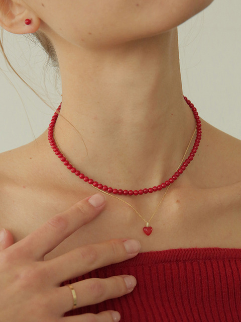 트윈비 써지컬 원석 초커 레드 산호석 목걸이