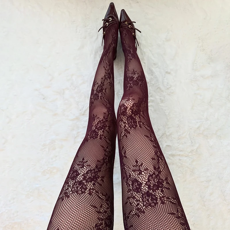섹시한 검은 말 오일 스타킹 여성 원피스 얇은 통기성 스타킹 4면 중공 광택 오일 같은 빨간색 스타킹 긴 양말