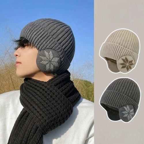 TEMU 남성용 겨울 니트 모자 스카프 장갑 귀마개 양말 세트 5종 플리스 안감 통합 목도리 따뜻한 코지 세트