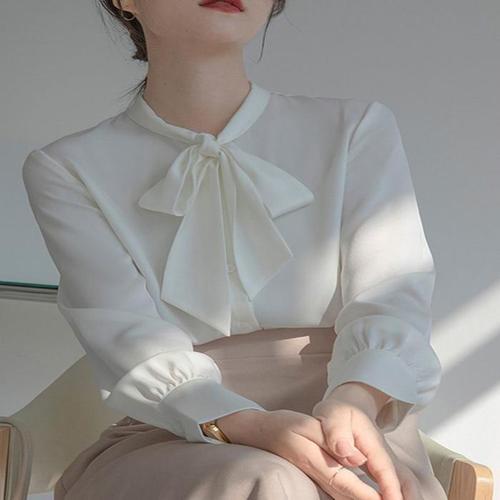[셀러허브_여성트랜드패션]Rly 여자 봄 가을 리본 스카프 새틴 블라우스 긴팔 오피스