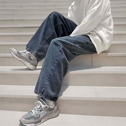 [셀럽하우스]남성 HNNX0548 스트릿 와이드핏 생지 데님 청바지 캐주얼룩