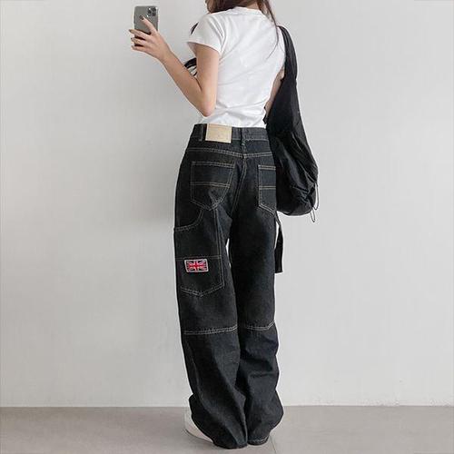 [라이니]성조기 논페이드 카펜더 생지 와이드 롱 데님 팬츠bo-3274c