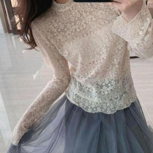 [엄지척]여성 시스루 레이스 하이넥 이너 블라우스_19646066_667501