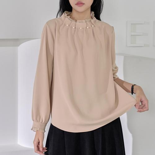 [로즈미] [55~77] 샤르망 프릴 진주 블라우스