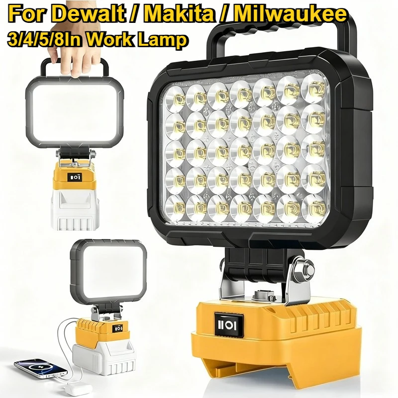 디월트 18V 배터리용 휴대용 LED 작업등 USB 포트 포함 3인치 플래시라이트 플러드 라이트 무선 야외 공구 램프 마키타용