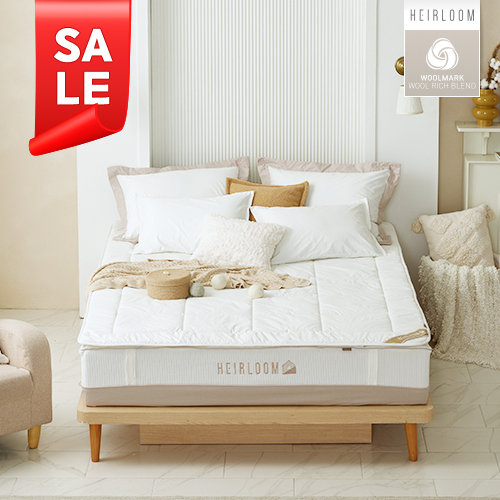 [최저가/퀸 ](런칭가 179,900원)/ 에어룸 호주산 양모 사계절 볼륨 토퍼 2 + 양모베개 2+ 순면 베개커버 2