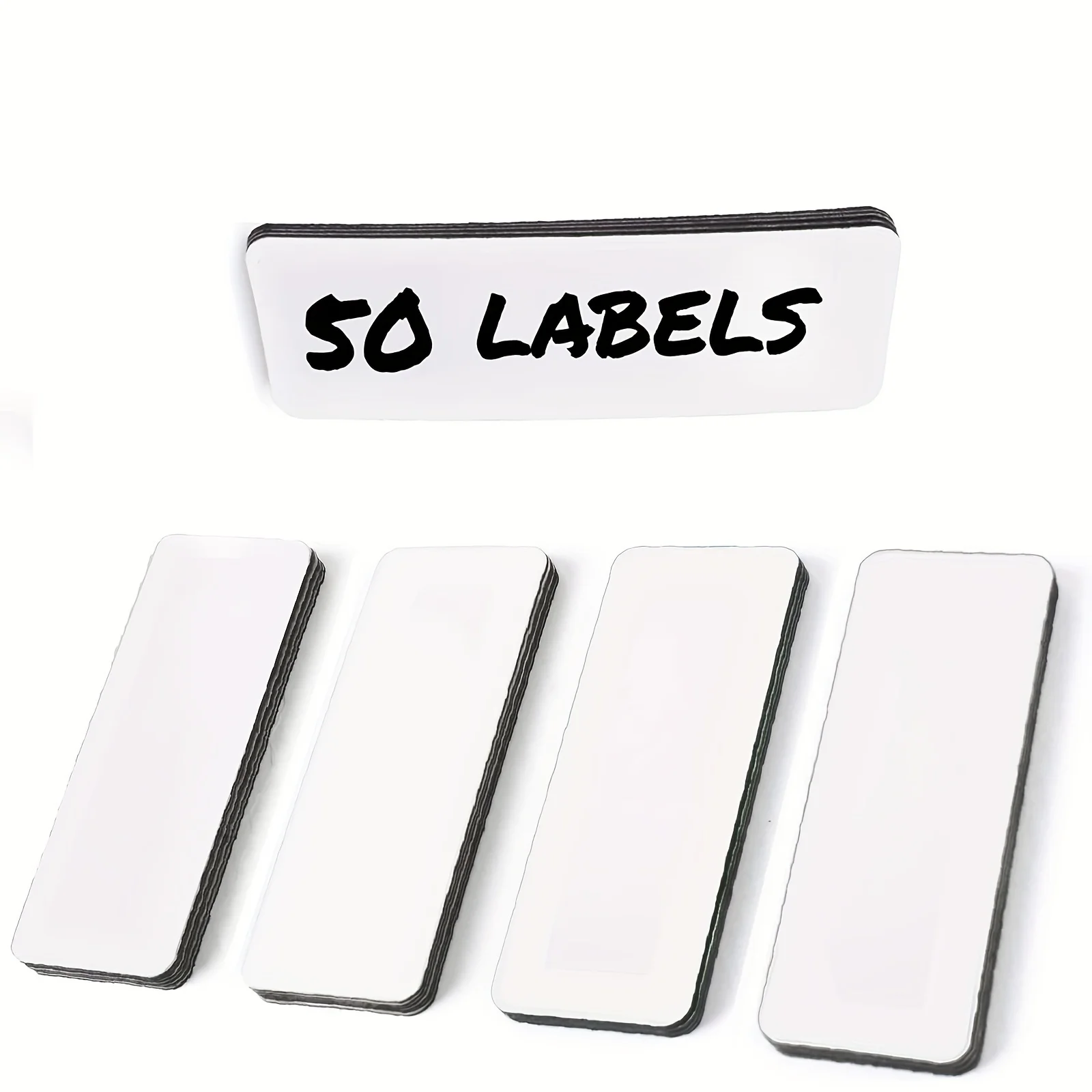 50개 1.2x3.2인치 흰색 자석 라벨, 냉장고 가정 사무실 차고 냉장고용 방수 스트립, 빈 쓰기 가능 카드