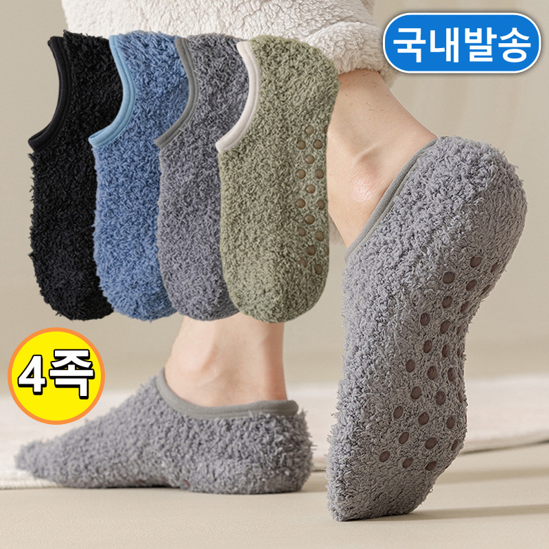TEMU 4족/여성코랄미끄럼방지덧신/남성덧신/겨울철발따뜻한기모두께홈수면양말/히든양말/짧은양말