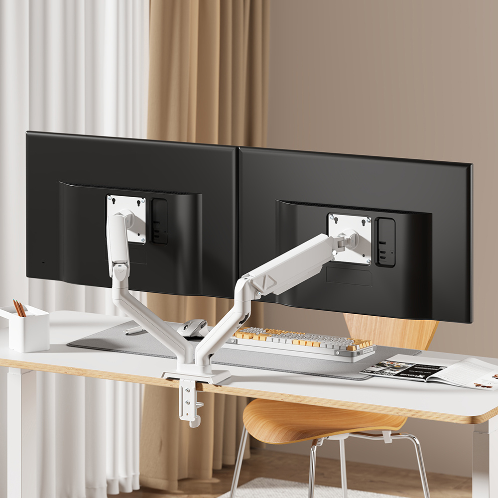TEMU 조절 가능한 듀얼 모니터 스탠드 - 틸트 & 스위블 - 13-32인치 스크린 2개를 위한 아이언 데스크 마운트, 각각 최대 22파운드까지 지지, 360도 회전, 효율적인 케이블 관리 시스템|모니터받침대